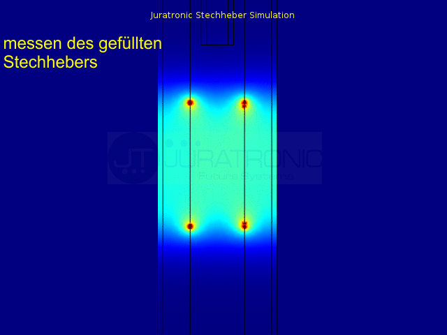 Abb.: Die Animation zeigt einen Stechheber, der sich im kapazitiven Messfeld bewegt.